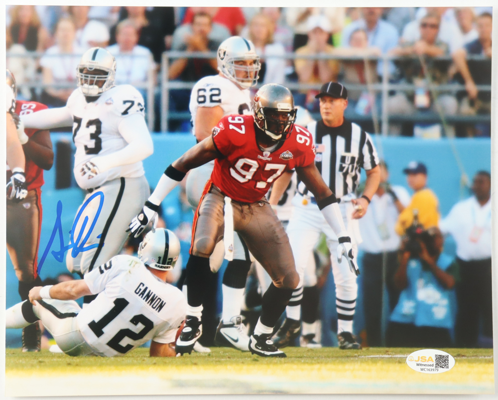 Photo measures 8" x 10" in size and has been hand-signed by Simeon Rice (Tampa Bay Buccaneers).