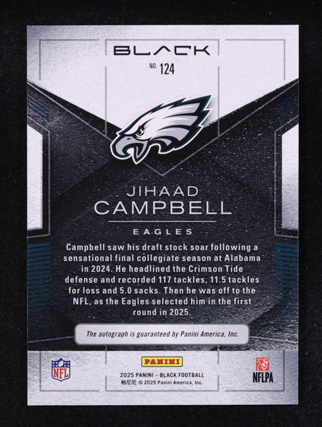 Jihaad Campbell 2025 Panini Black Emerald #124 #5/15 RC