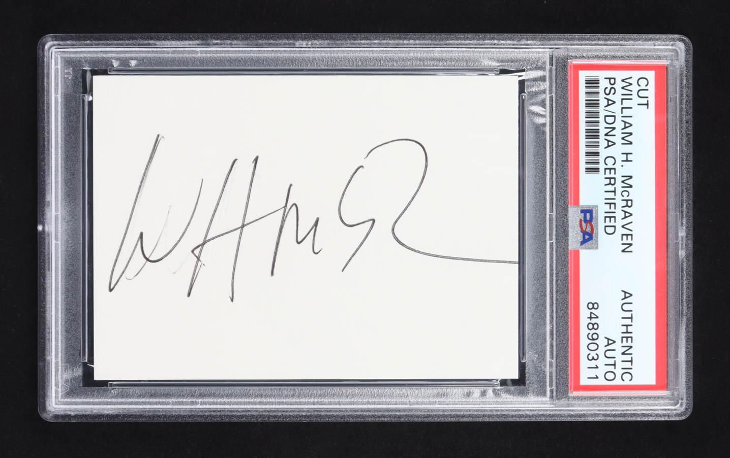 Cut measures approximately 2.5" x 3.5" in size and is hand-signed by William H. McRaven.