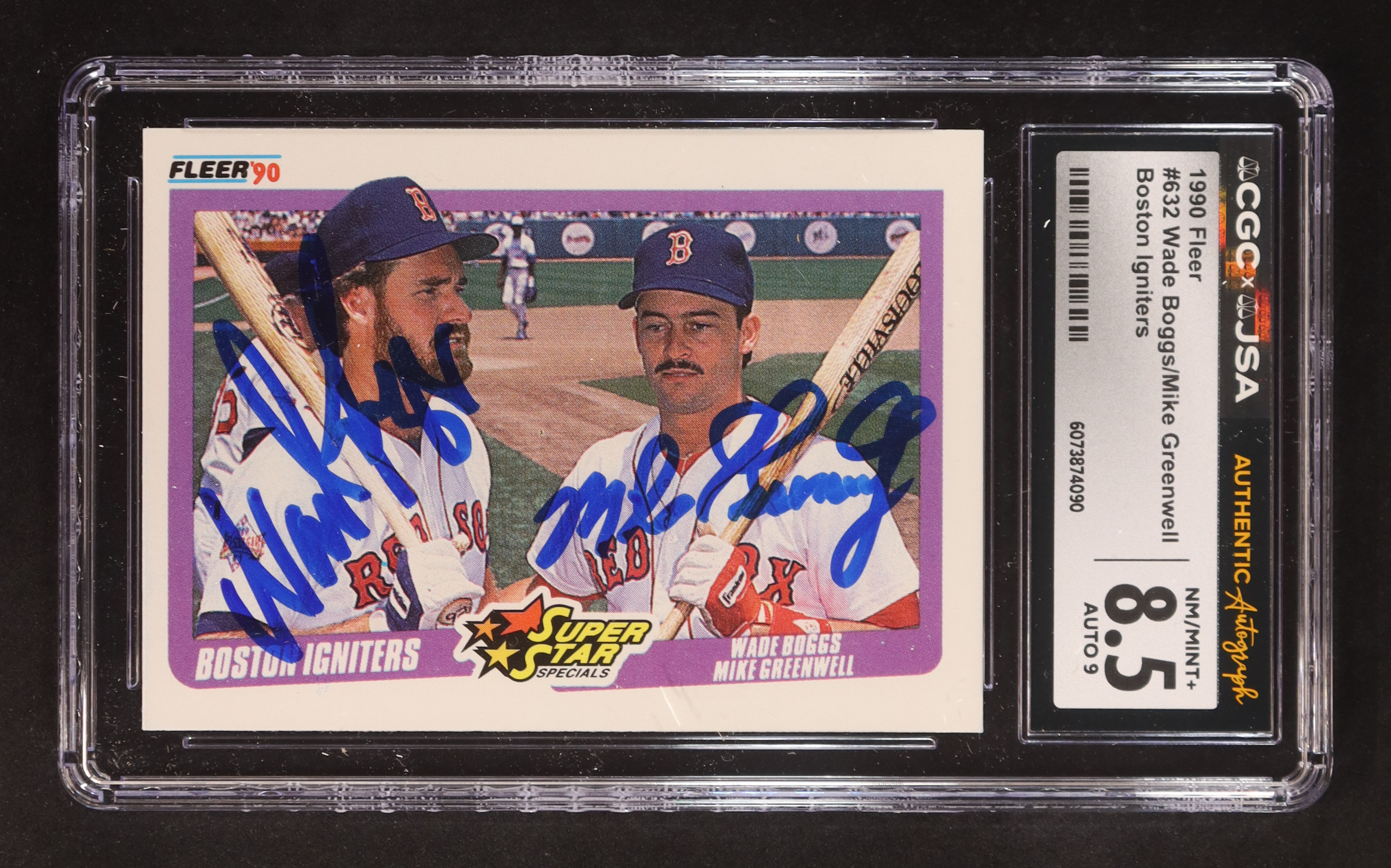 Wade Boggs / Mike Greenwell Signed 1990 Fleer Boston Igniters Super Star Specials #632 (CGC 8.5 | Autograph Graded CGC 9)