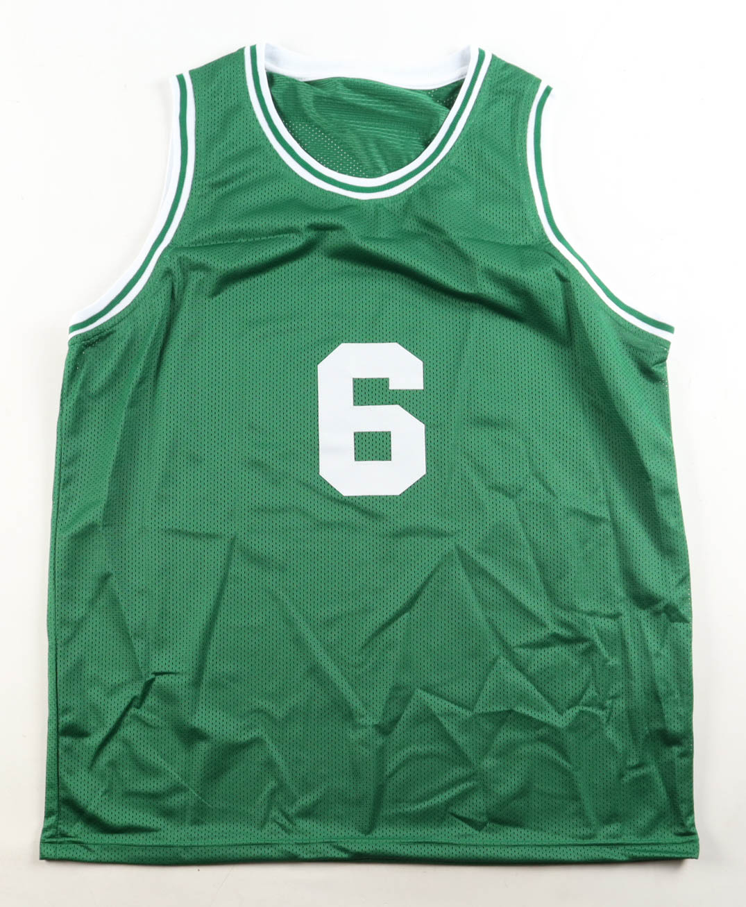 Custom jersey with everything sewn on, size XL. Hand-signed by Bill Russell (D. 2022, HOF).