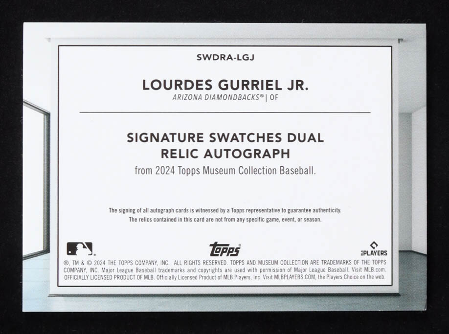 Lourdes Gurriel Jr. 2024 Topps Museum Collection Signature Swatches Dual Relic Autographs #SWDRALGJ #1/299