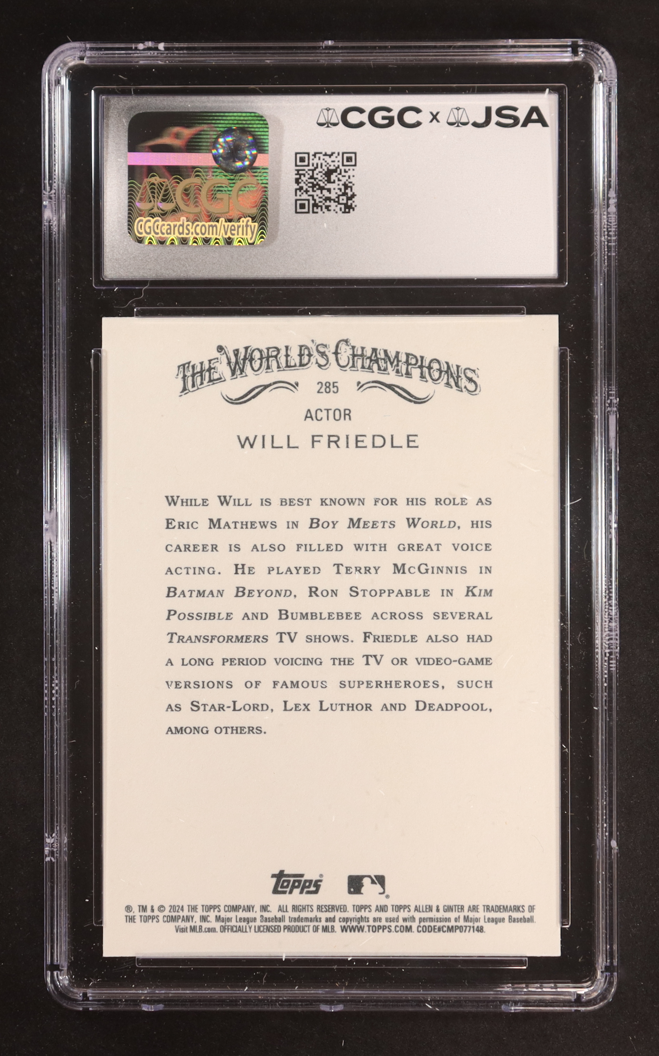 Will Friedle Signed 2024 Topps Allen & Ginter #285 (CGC 10 | Autograph Graded CGC 10)