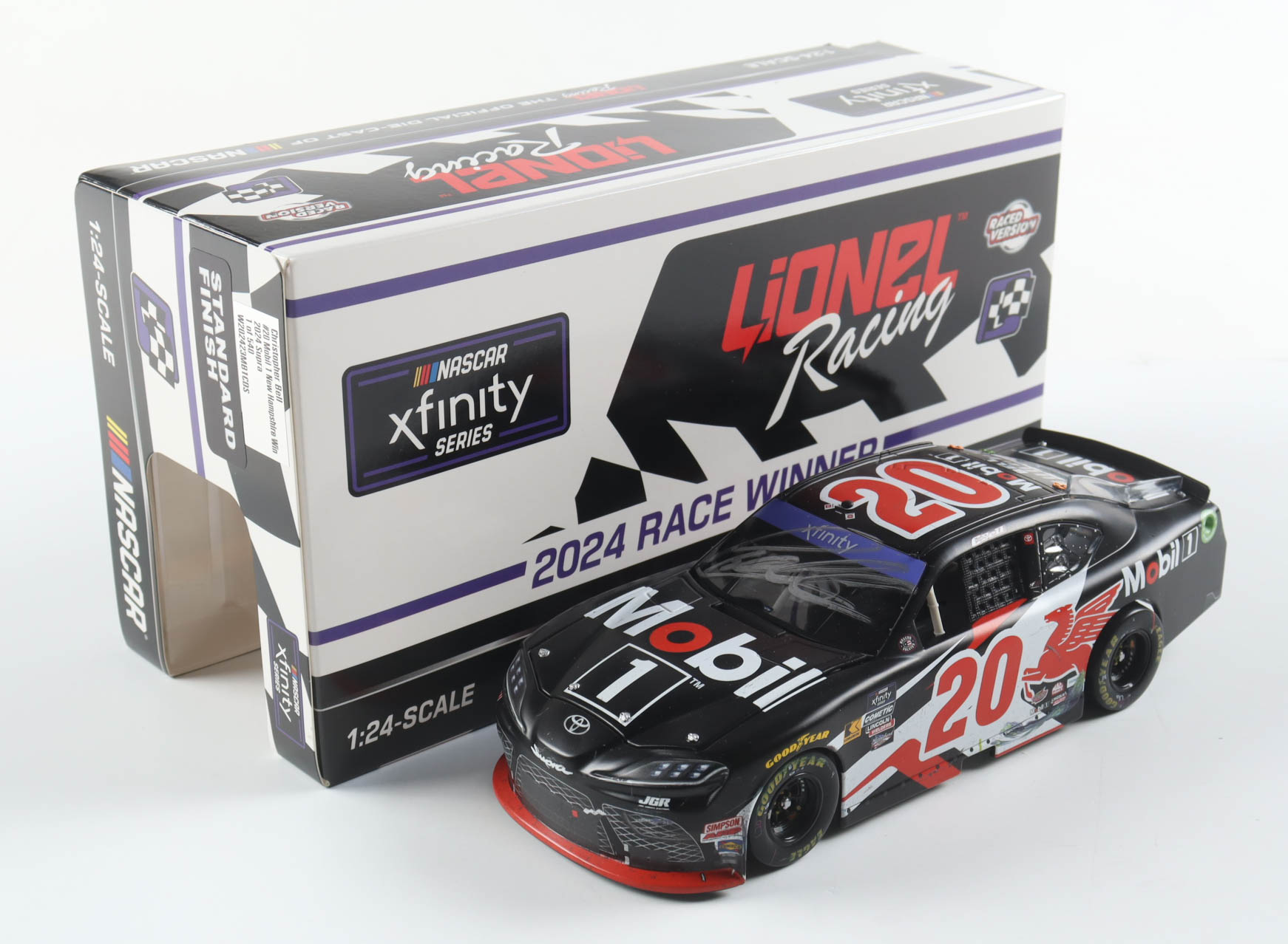 The #20 Mobil 1 New Hampshire Win 2024 Supra is a limited edition to just 540 produced and includes the original packaging.