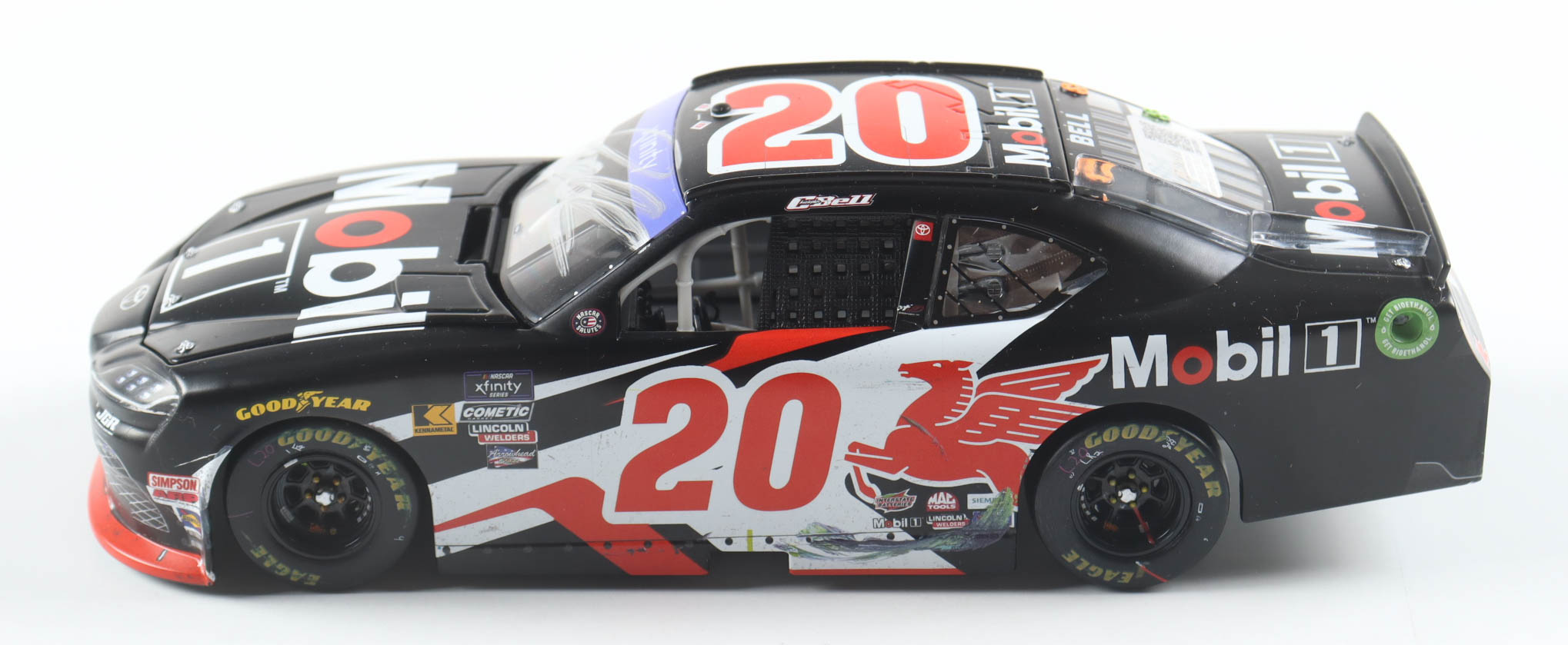 NASCAR die-cast car has been hand-signed on the windshield by Christopher Bell.