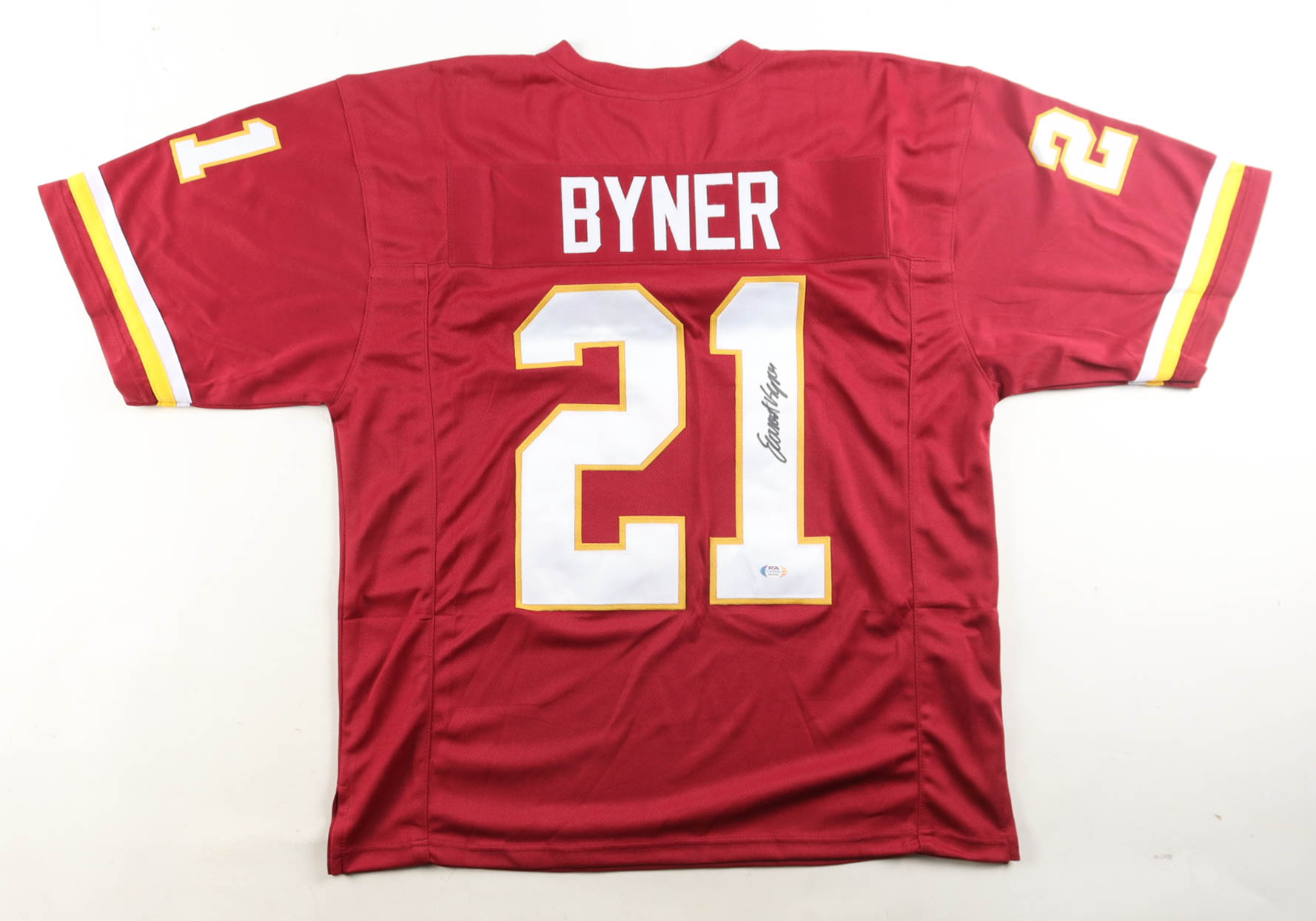 Custom jersey with everything sewn on, size XL. Hand-signed by Earnest Byner.