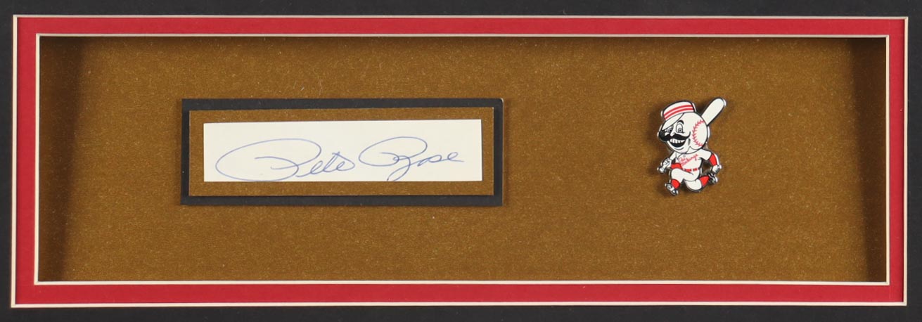 Pete Rose Signed Custom Framed Cut Display with Jersey & Big Red Machine Pin (Beckett)