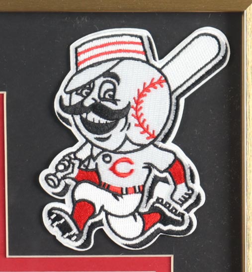 Custom frame display measures approximately 32" x 36" in size and features a jersey and a cut that has been hand-signed by Pete Rose (D. 2024). The display also includes a Big Red Machine Pin, (2) 8" x 10" photos as well as (2) cloth team logo patches.