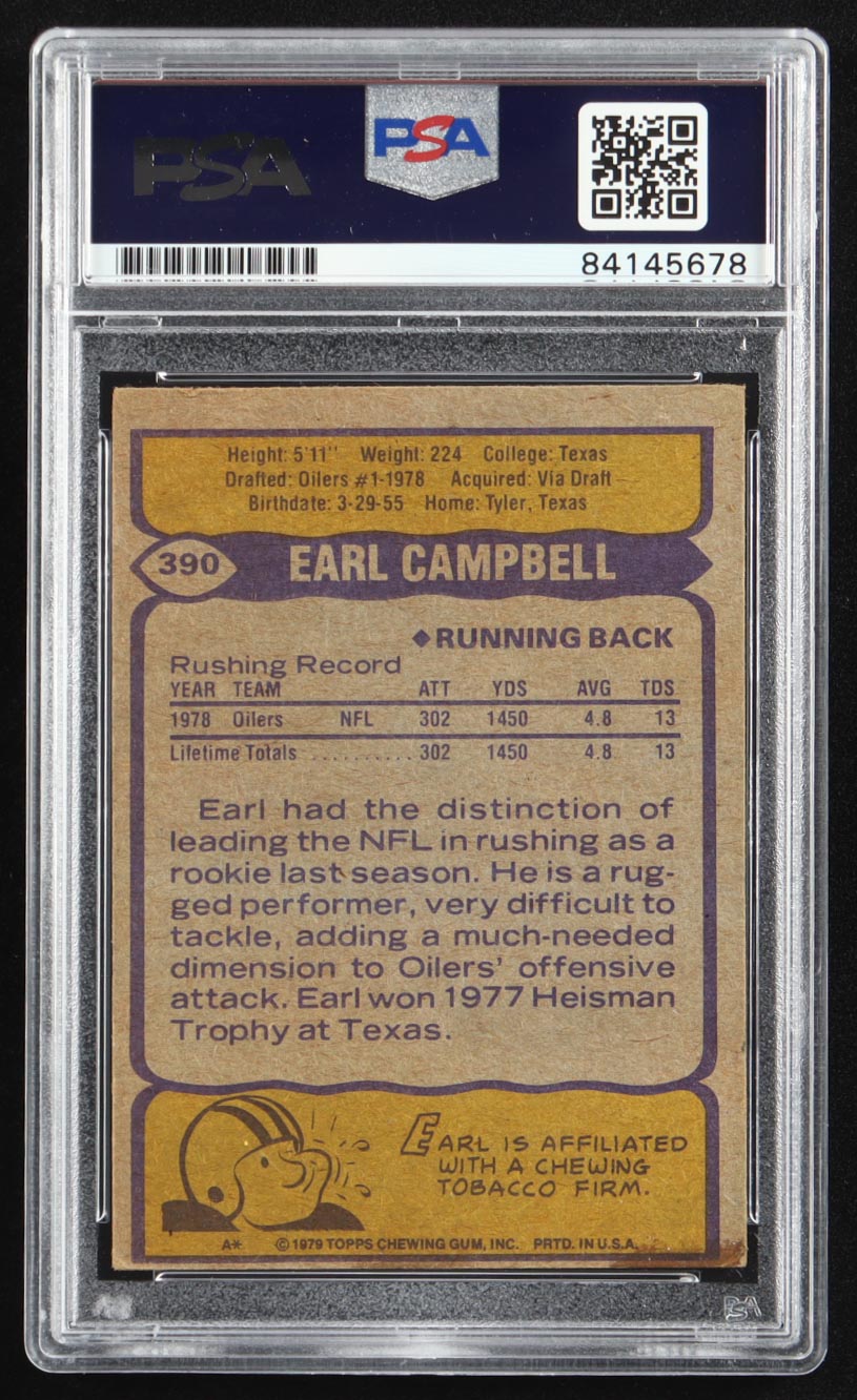 Earl Campbell Signed 1979 Topps #390 RC (PSA)
