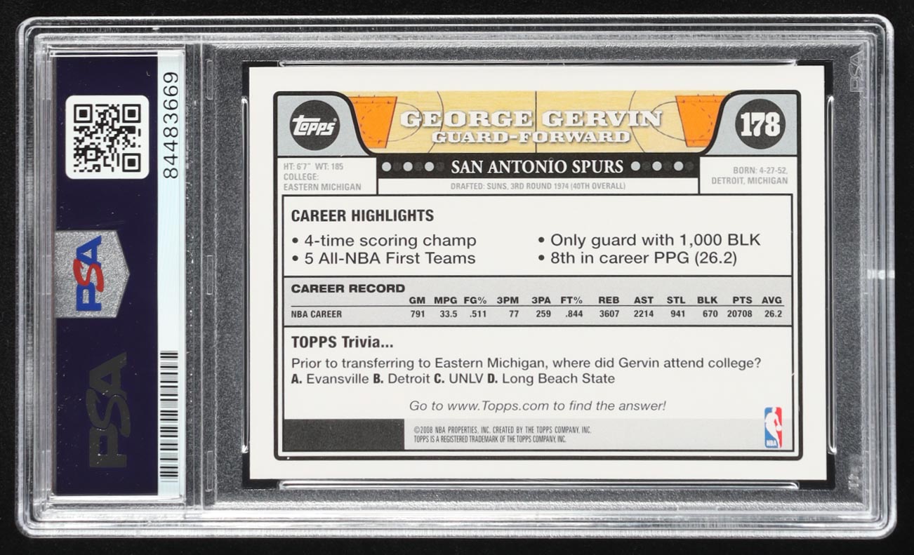 George Gervin Signed 2008-09 Topps #178 (PSA Authentic)