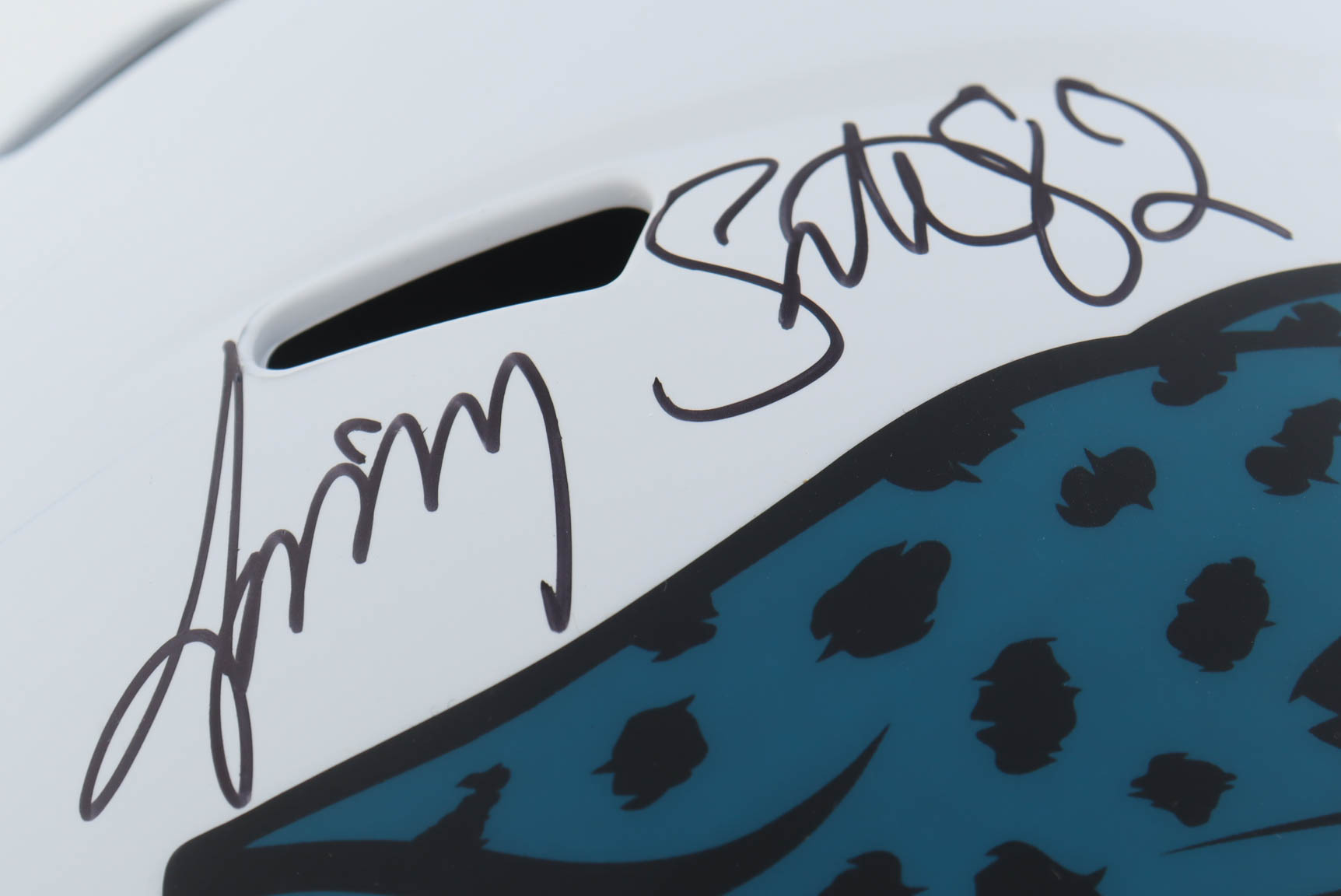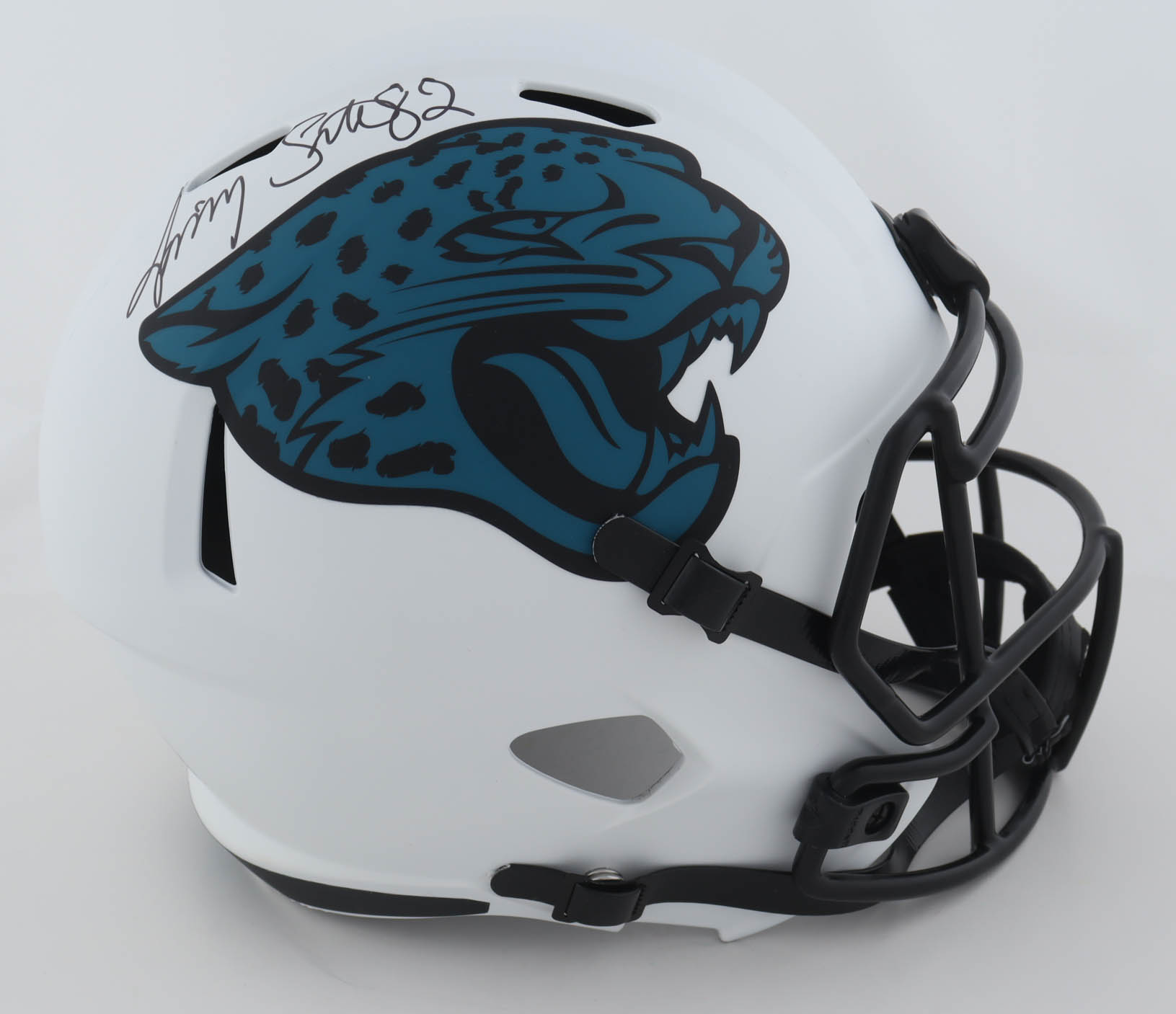 Riddell Jacksonville Jaguars full-size Lunar Eclipse alternate replica speed helmet. Hand-signed by Jimmy Smith.