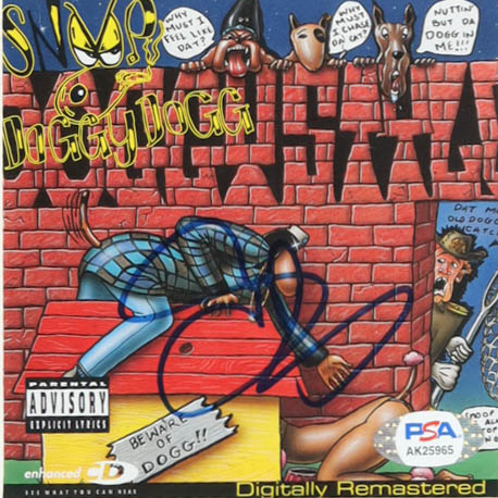 Custom frame measures approximately 8" x 13.5" in size. Features a "Doggystyle" CD that has been hand-signed by Snoop Dogg. The display also includes CD. Please note, there is some scuffing on the frame.