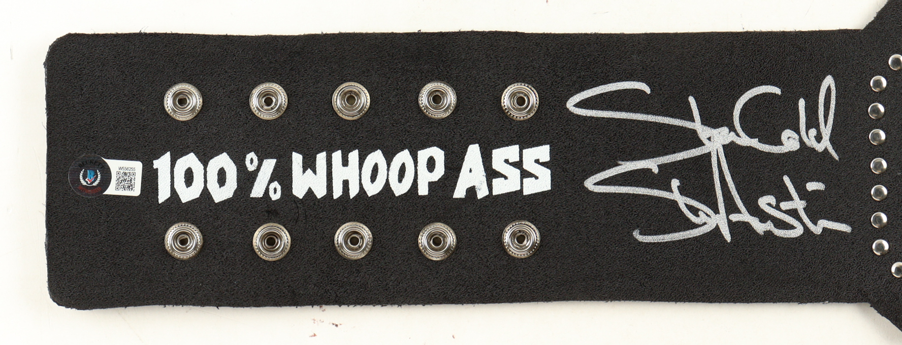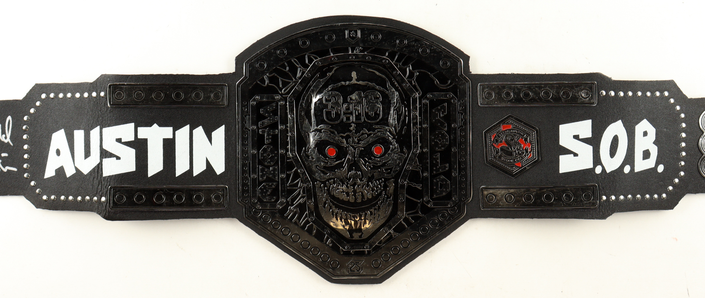 Full-Size Belt measures approximately 52" in length and has been hand-signed by Steve Austin (HOF). Please see photos for details regarding the condition of the belt.