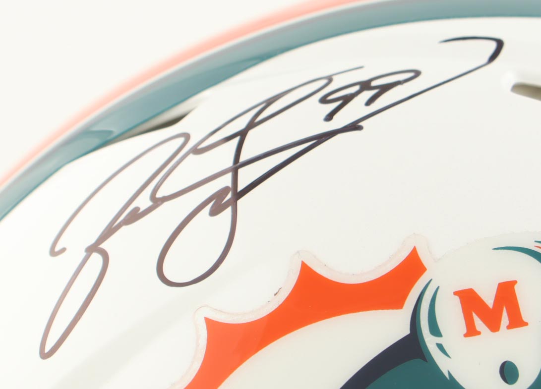 Riddell Miami Dolphins Full-Size Authentic On-Field Speed helmet. Has been hand-signed by Jason Taylor.