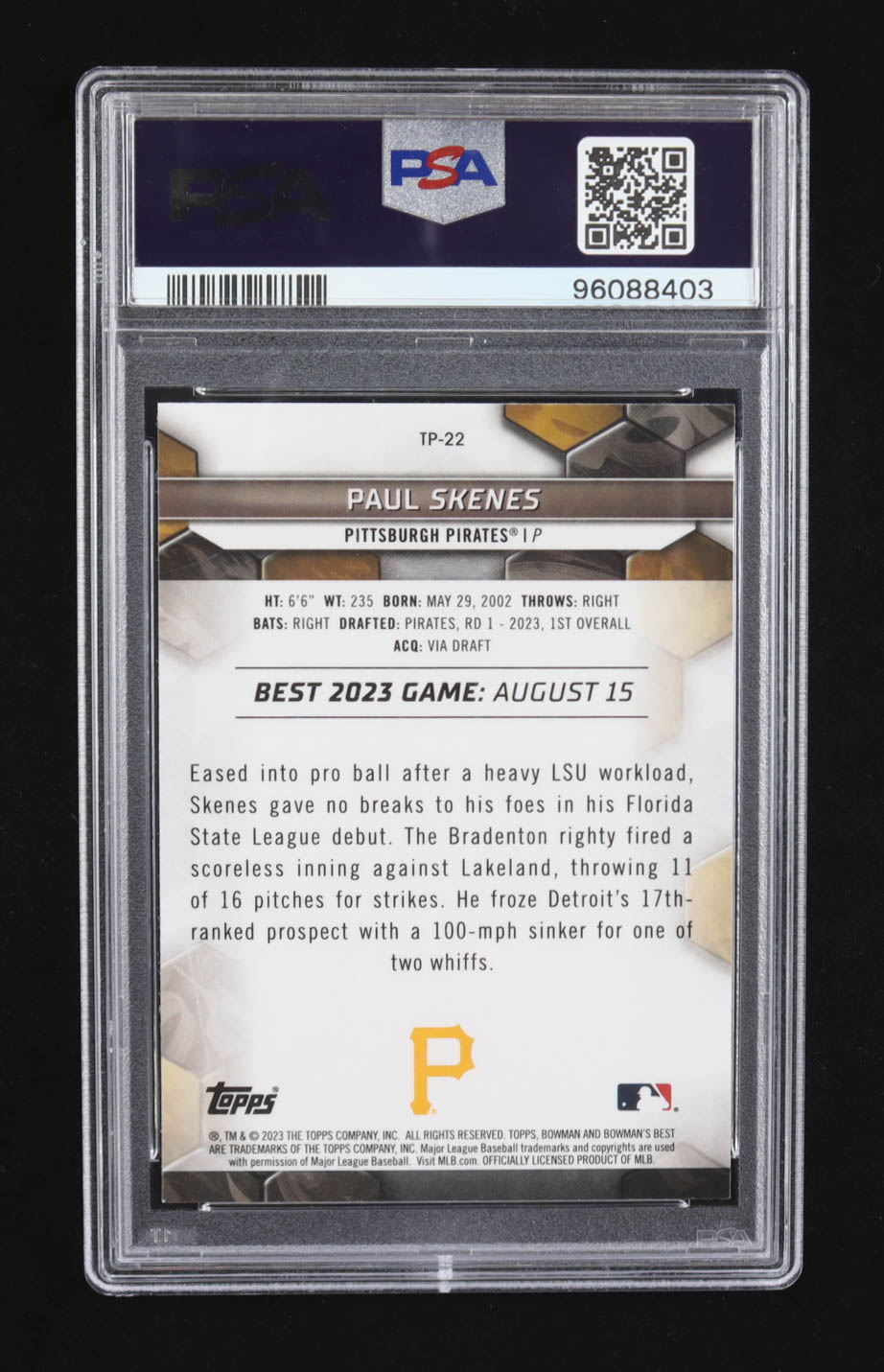Paul Skenes 2023 Bowman's Best Top Prospects #TP22 RC (PSA 9)
