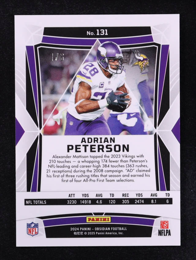 Adrian Peterson 2024 Panini Obsidian International Jade #131 #1/6