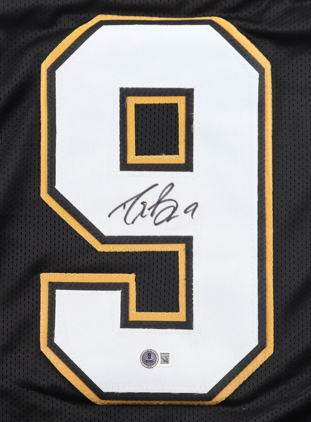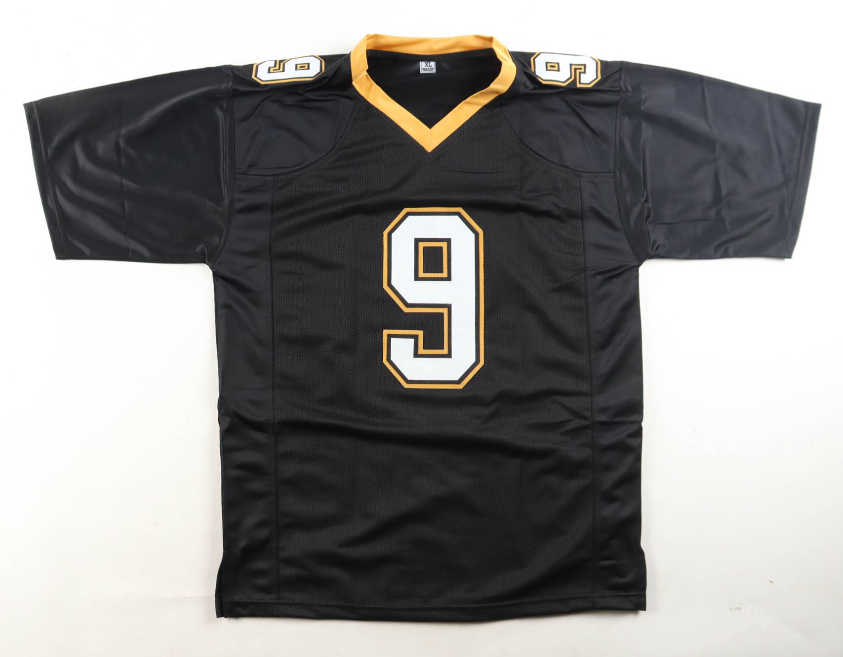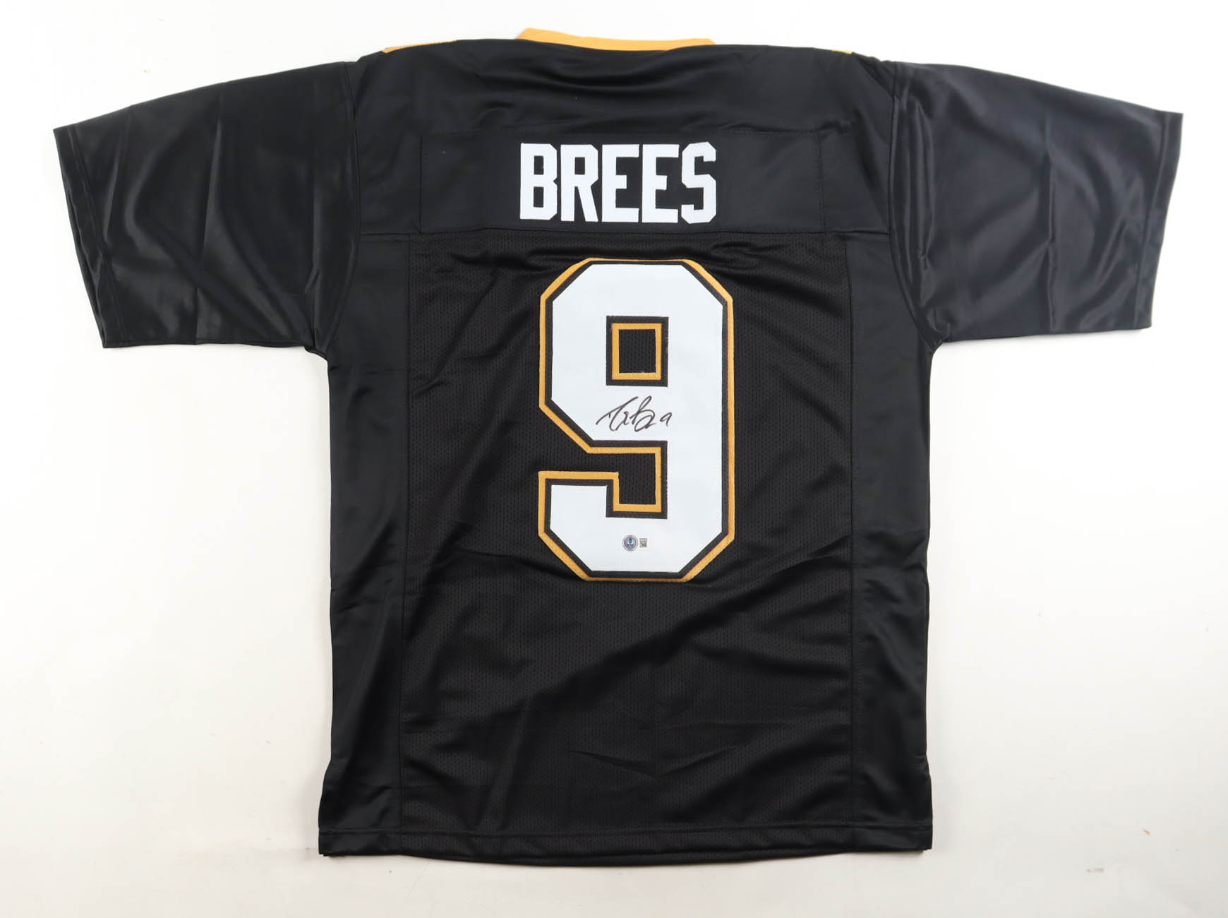 Custom jersey with everything sewn on, size XL. Hand-signed by Drew Brees. Please note, glue is visible through the reverse number.