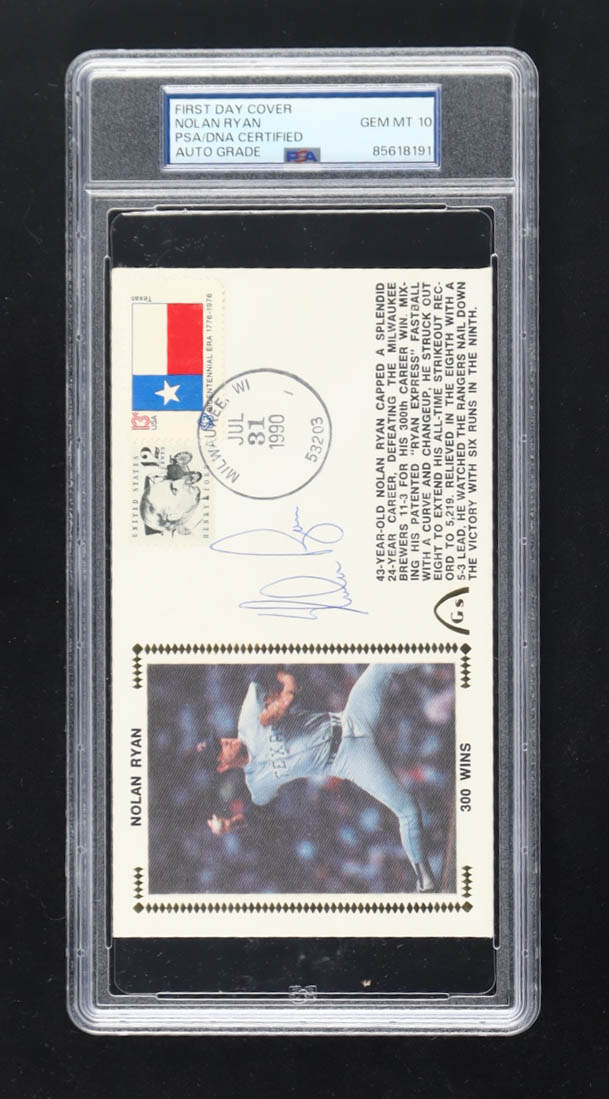 Nolan Ryan Signed 1990 "300 Wins" FDC Envelope (PSA)