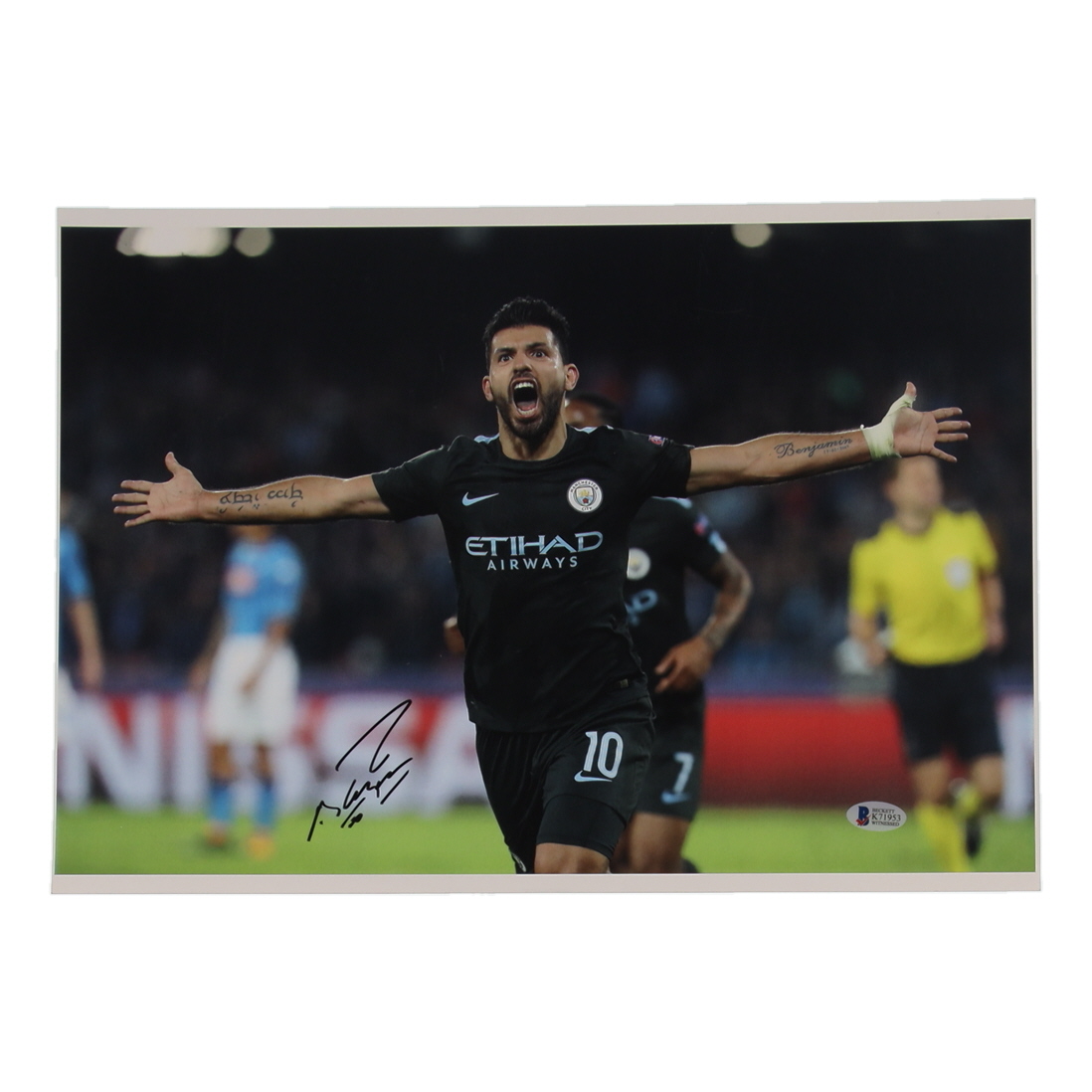 Sergio Aguero Signed Manchester City FC 11x17 Photo (Beckett)