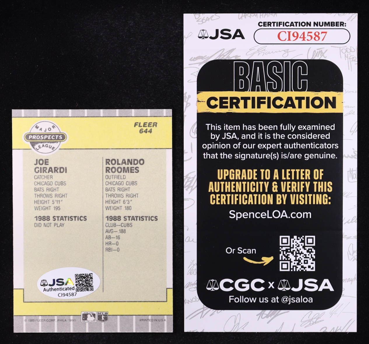 Joe Girardi / Rolando Holmes 1989 Fleer #644 RC