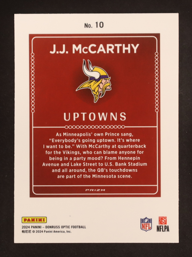 JJ McCarthy 2024 Donruss Optic Uptowns #10 RC