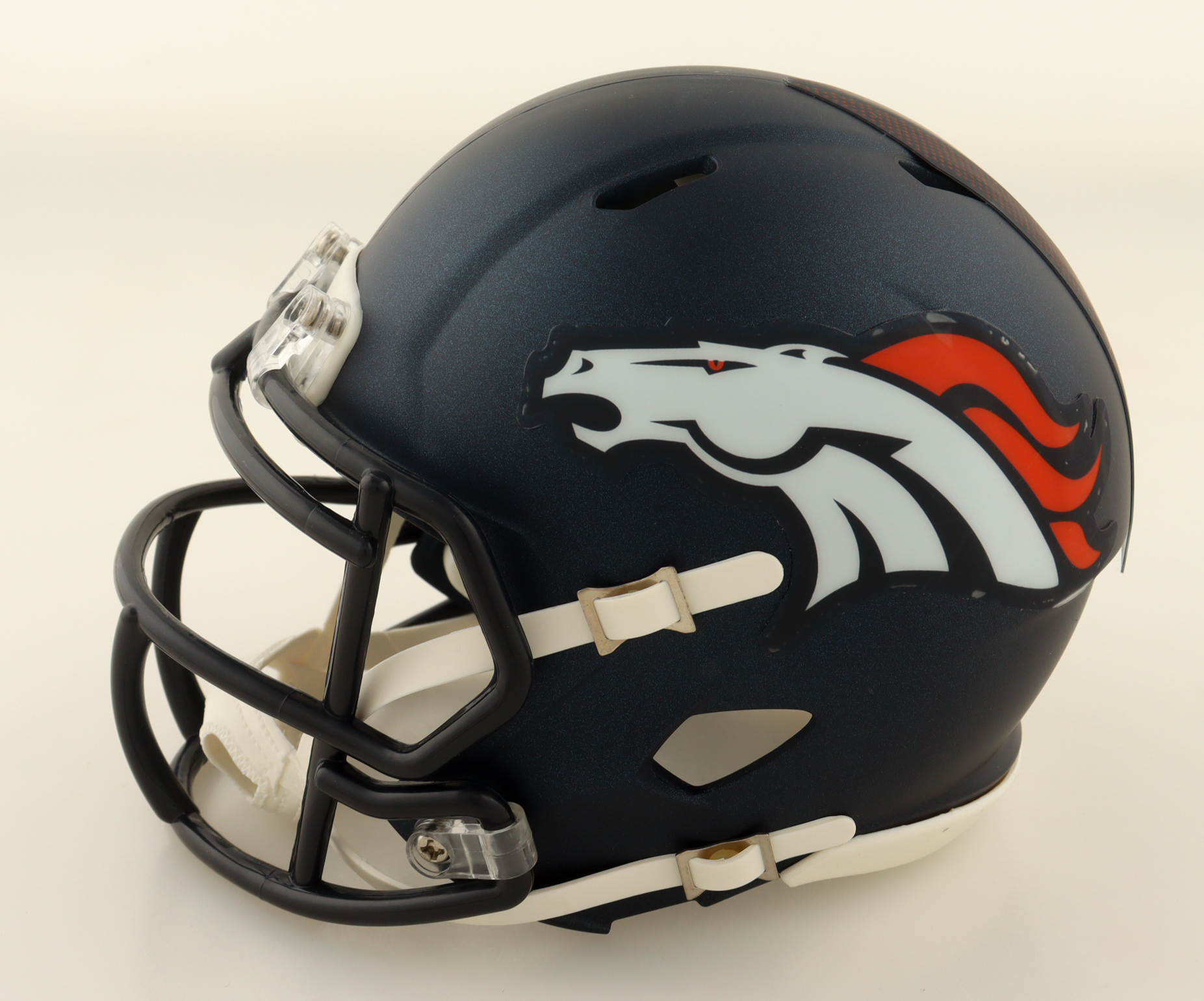 Riddell Denver Broncos Speed mini helmet has been hand-signed by Bo Nix.