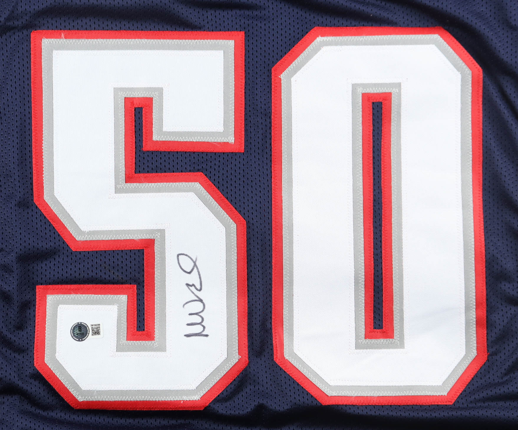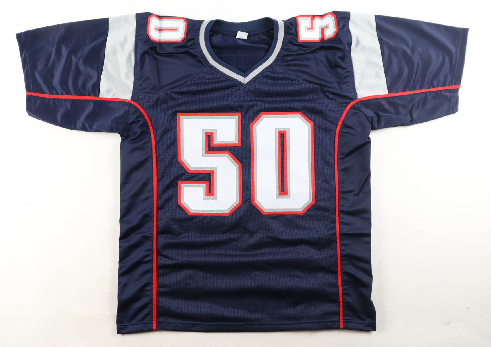 Custom jersey with everything sewn on, size XL. Hand-signed by Mike Vrabel.