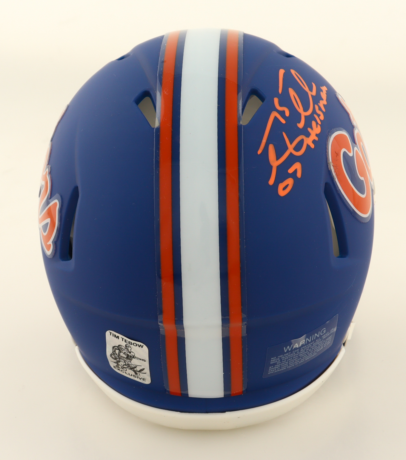 Riddell Florida Gators Speed mini helmet. Hand-signed and inscribed by Tim Tebow.