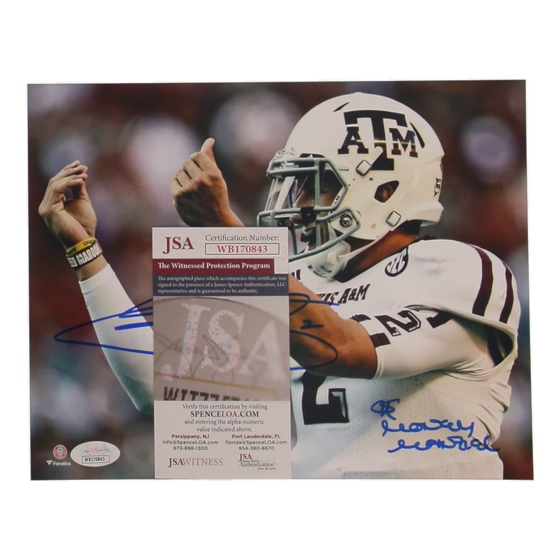 Photo measures 8" x 10" in size and has been hand-signed and inscribed by Johnny Manziel.