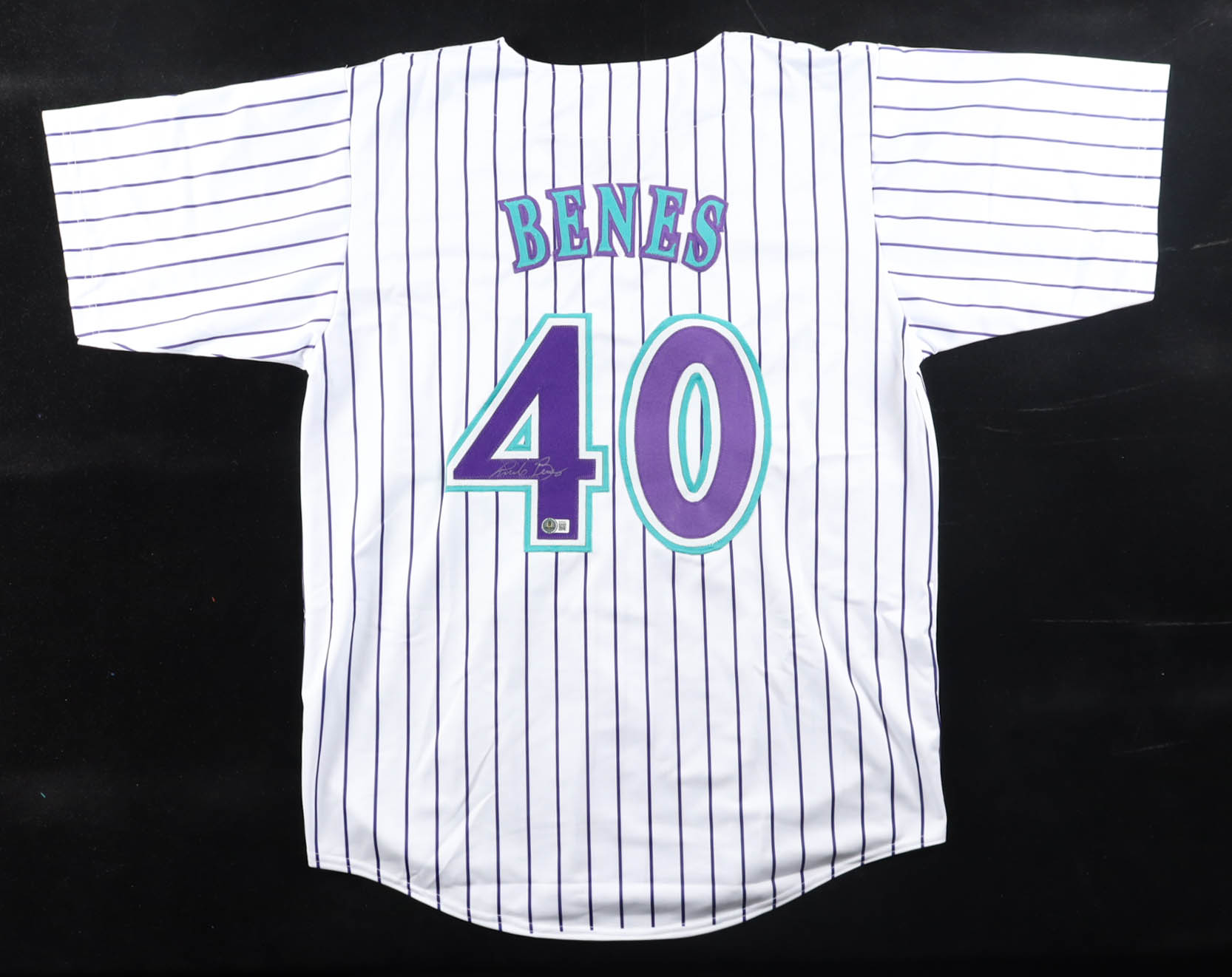 Custom jersey with everything sewn on, size XL. Hand-signed by Andy Benes.