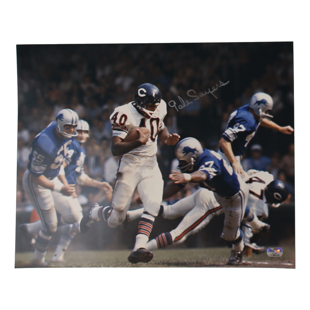 Photo measures 16" x 20" in size and has been hand-signed by Gale Sayers (Chicago Bears).