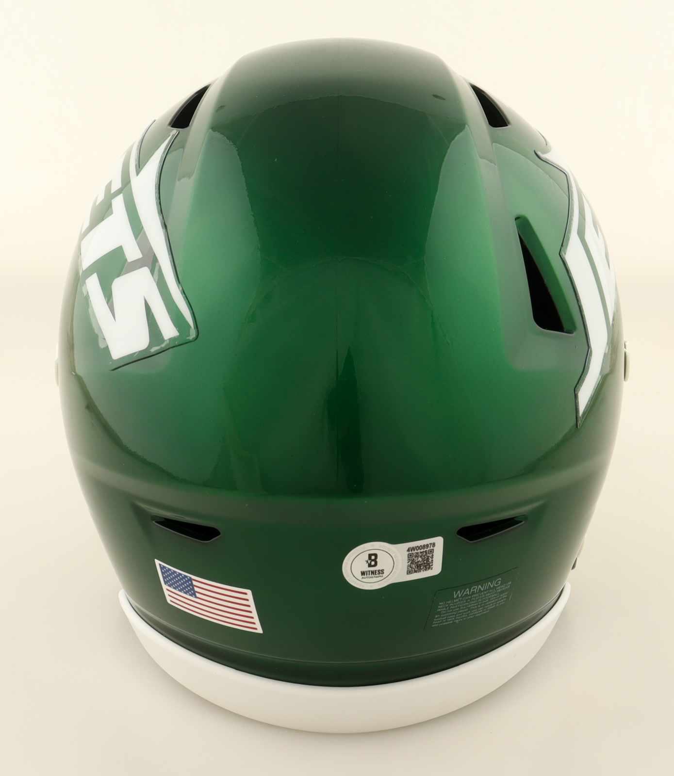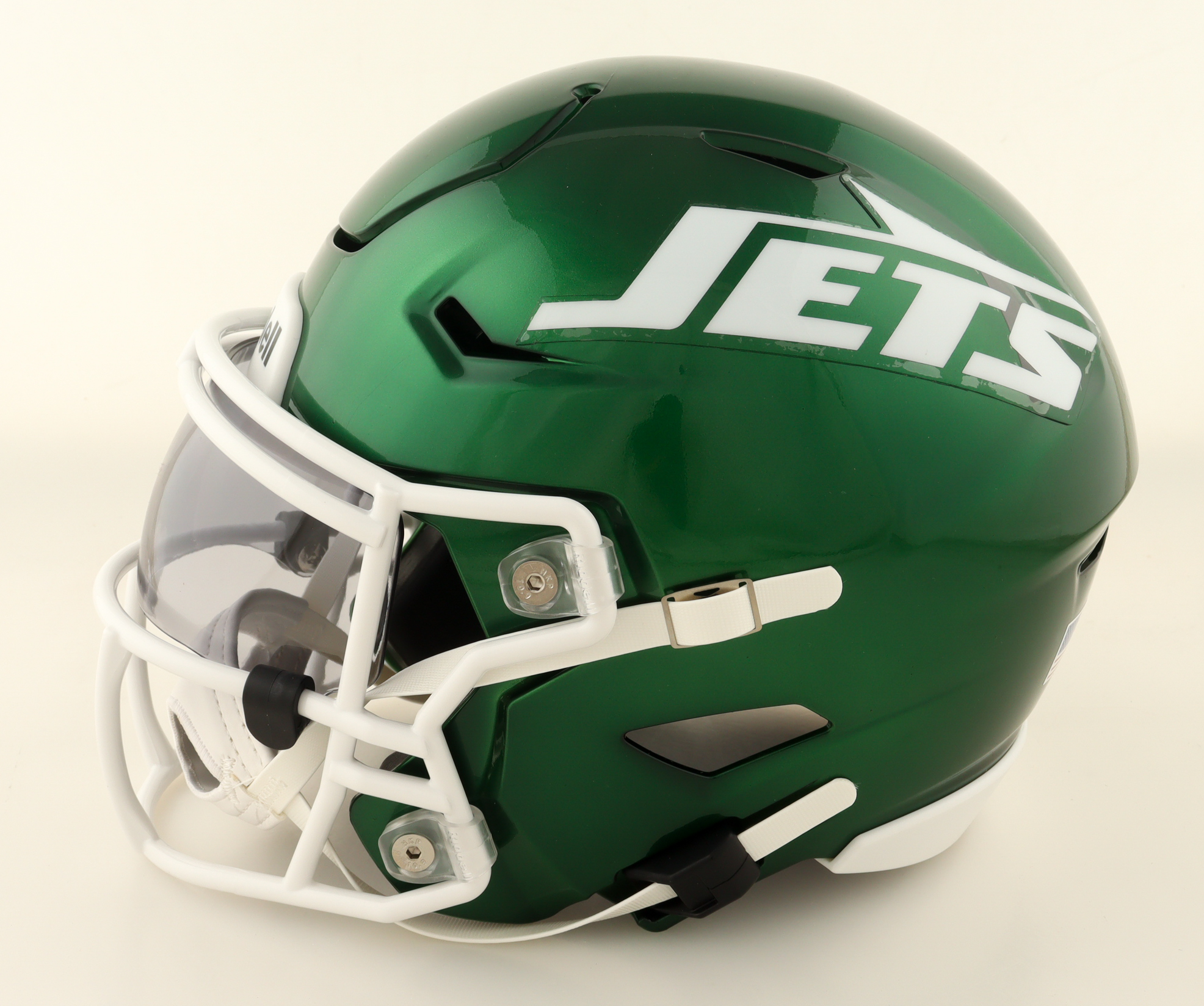 Riddell New York Jets Mid-Size SpeedFlex helmet with visor. Hand-signed by Justin Fields.