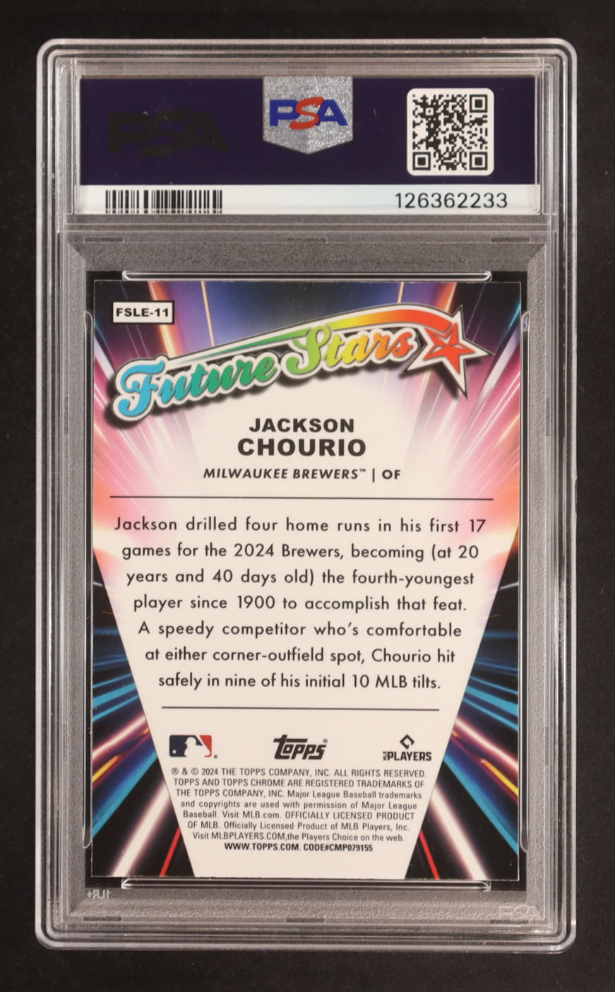 Jackson Chourio 2024 Topps Chrome Logofractor Future Stars #FSLE11 (PSA 8)