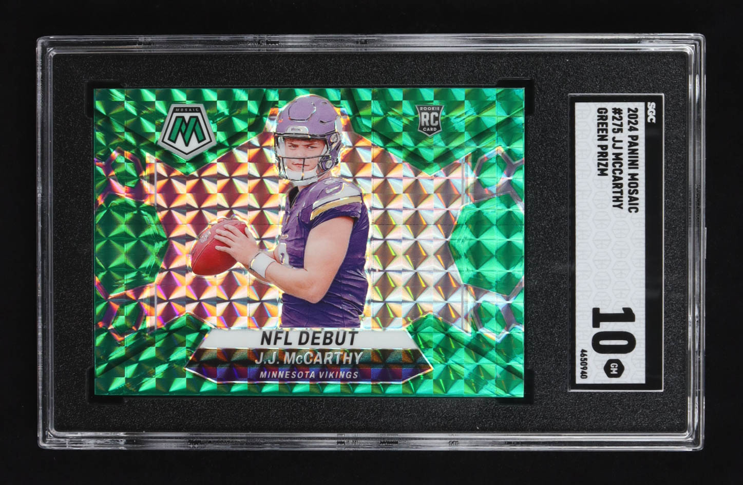 JJ McCarthy 2024 Panini Mosaic Mosaic Green #275 DEB RC (SGC 10)