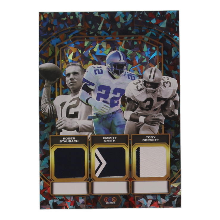 Roger Staubach / Emmitt Smith / Tony Dorsett 2024 TruCreator Jumbo Cracked Ice Materials #TJCRSESTD