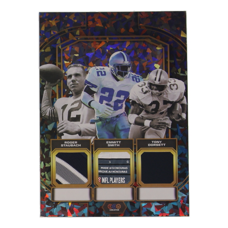 Roger Staubach / Emmitt Smith / Tony Dorsett 2024 TruCreator Jumbo Cracked Ice Materials #TJCRSESTD