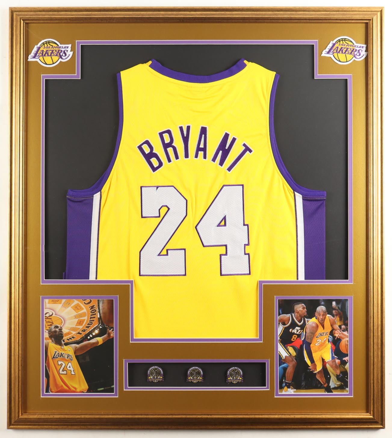 Kobe Bryant Custom Framed Jersey Display with (3) Championship Pins