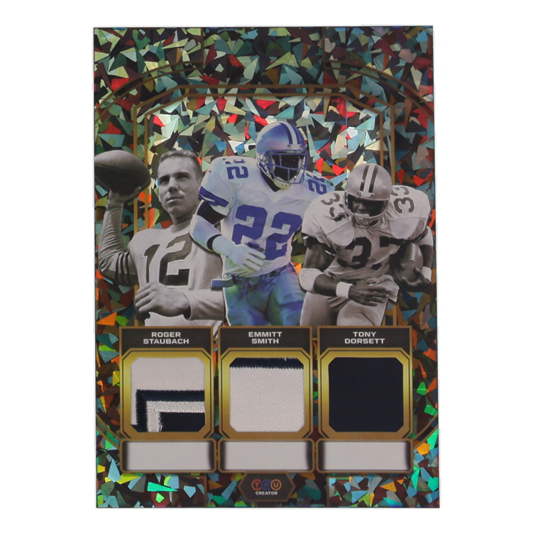Roger Staubach / Emmitt Smith / Tony Dorsett 2024 TruCreator Jumbo Cracked Ice Materials #TJCRSESTD