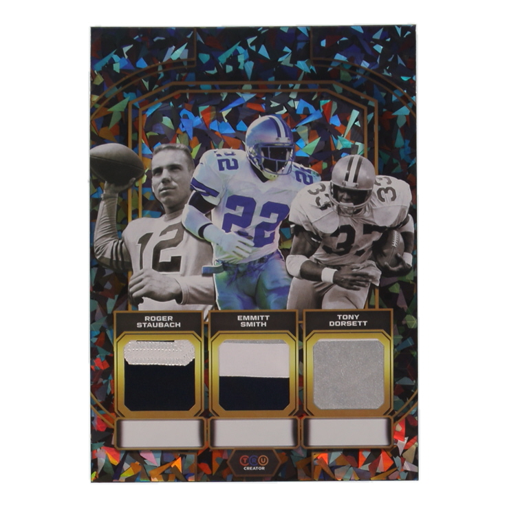 Roger Staubach / Emmitt Smith / Tony Dorsett 2024 TruCreator Jumbo Cracked Ice Materials #TJCRSESTD