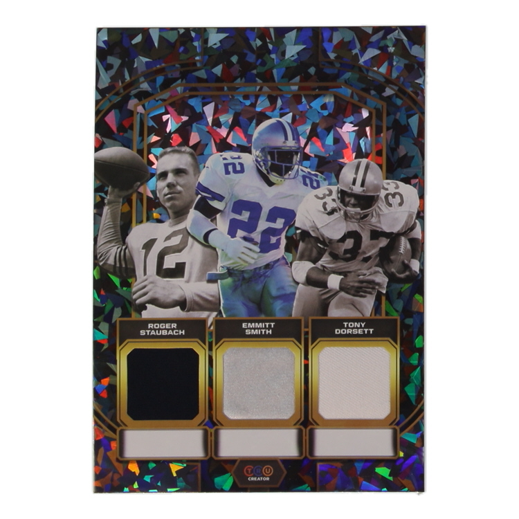 Roger Staubach / Emmitt Smith / Tony Dorsett 2024 TruCreator Jumbo Cracked Ice Materials #TJCRSESTD