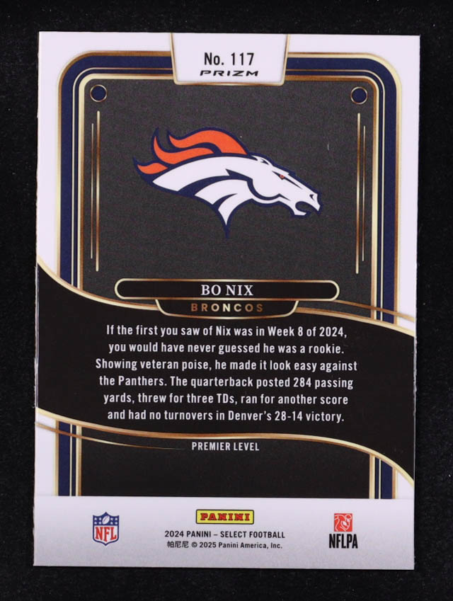 Bo Nix 2024 Select Prizm Red and Yellow Shock #117 RC