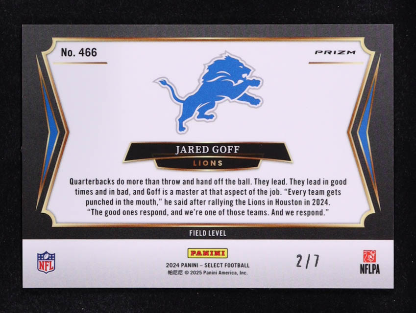 Jared Goff 2024 Select Prizm Neon Orange Pulsar #466 #2/7