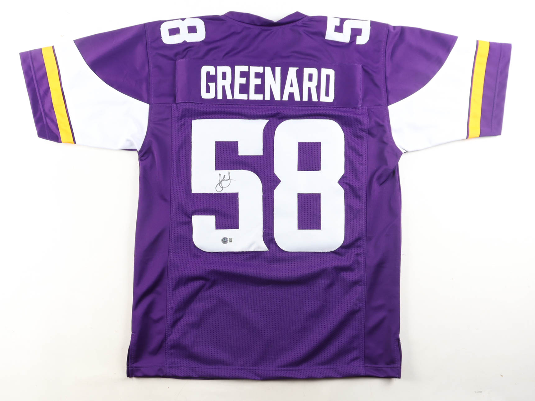Custom jersey with everything sewn on, size XL. Hand-signed by Jonathan Greenard.