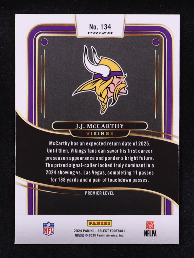 JJ McCarthy 2024 Select Prizm Black and Red Shock #134 RC