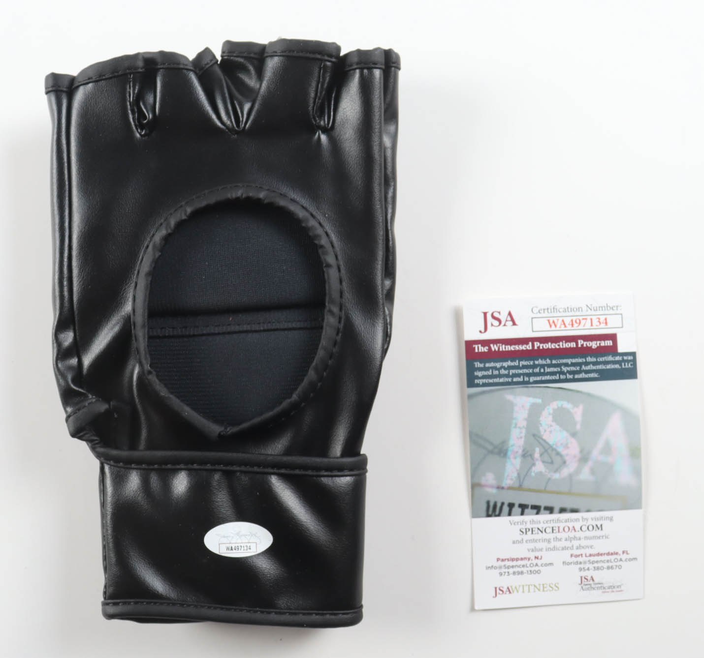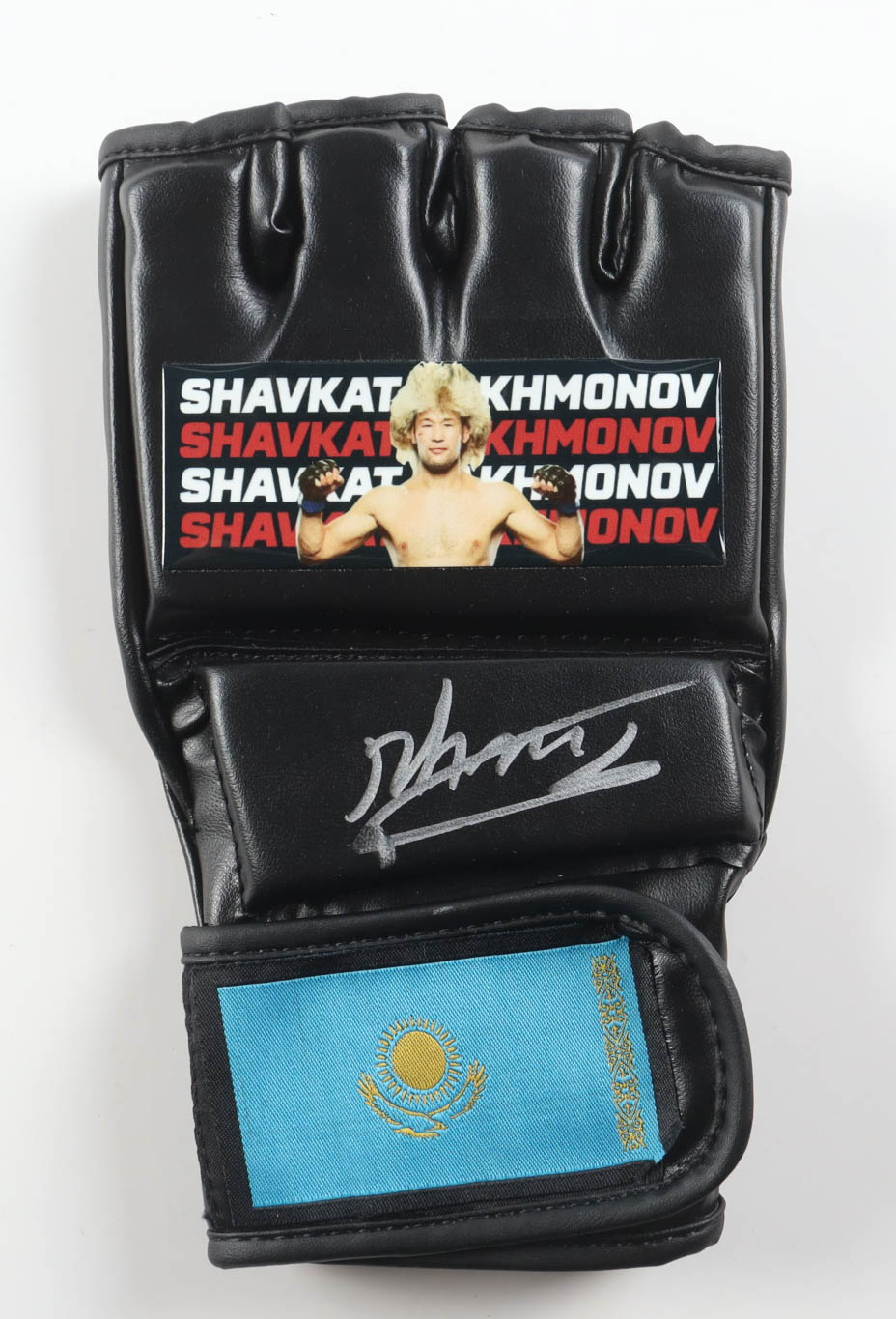 Custom MMA hand glove is hand-signed by Shavkat Rakhmonov (UFC). Please note the signature is smudged.