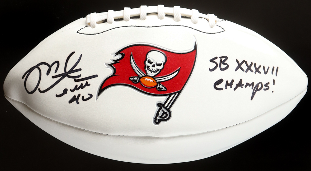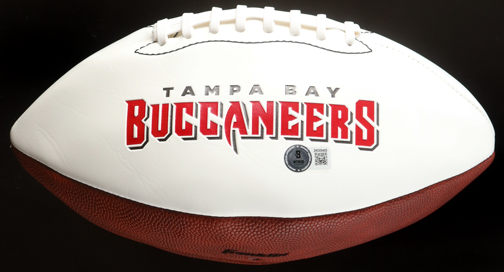 Franklin Tampa Bay Buccaneers Logo Football. Hand-signed and inscribed by Mike Alstott. Please note, the football does not hold air.