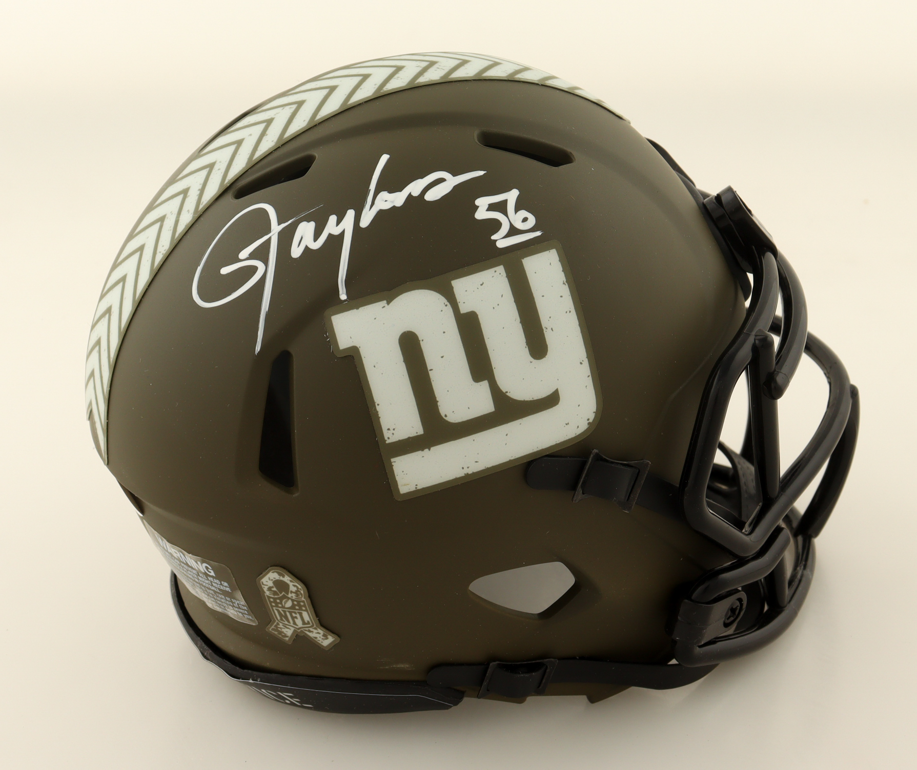 Riddell New York Giants Salute To Service Alternate Speed mini helmet. Hand-signed by Lawrence Taylor (HOF).