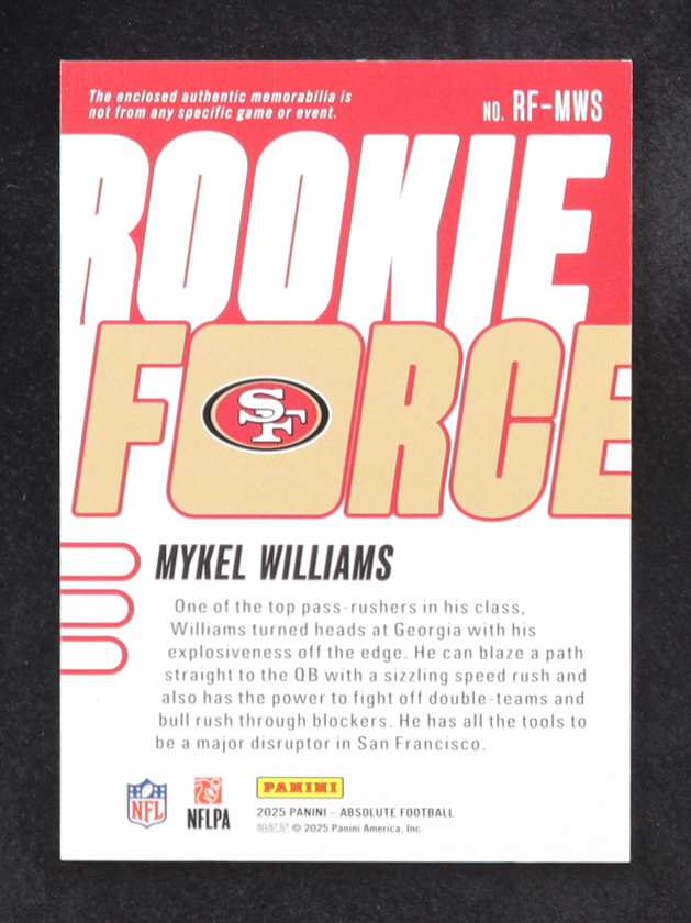 Mykel Williams 2025 Absolute Rookie Force Jerseys Gold #16 RC #82/99