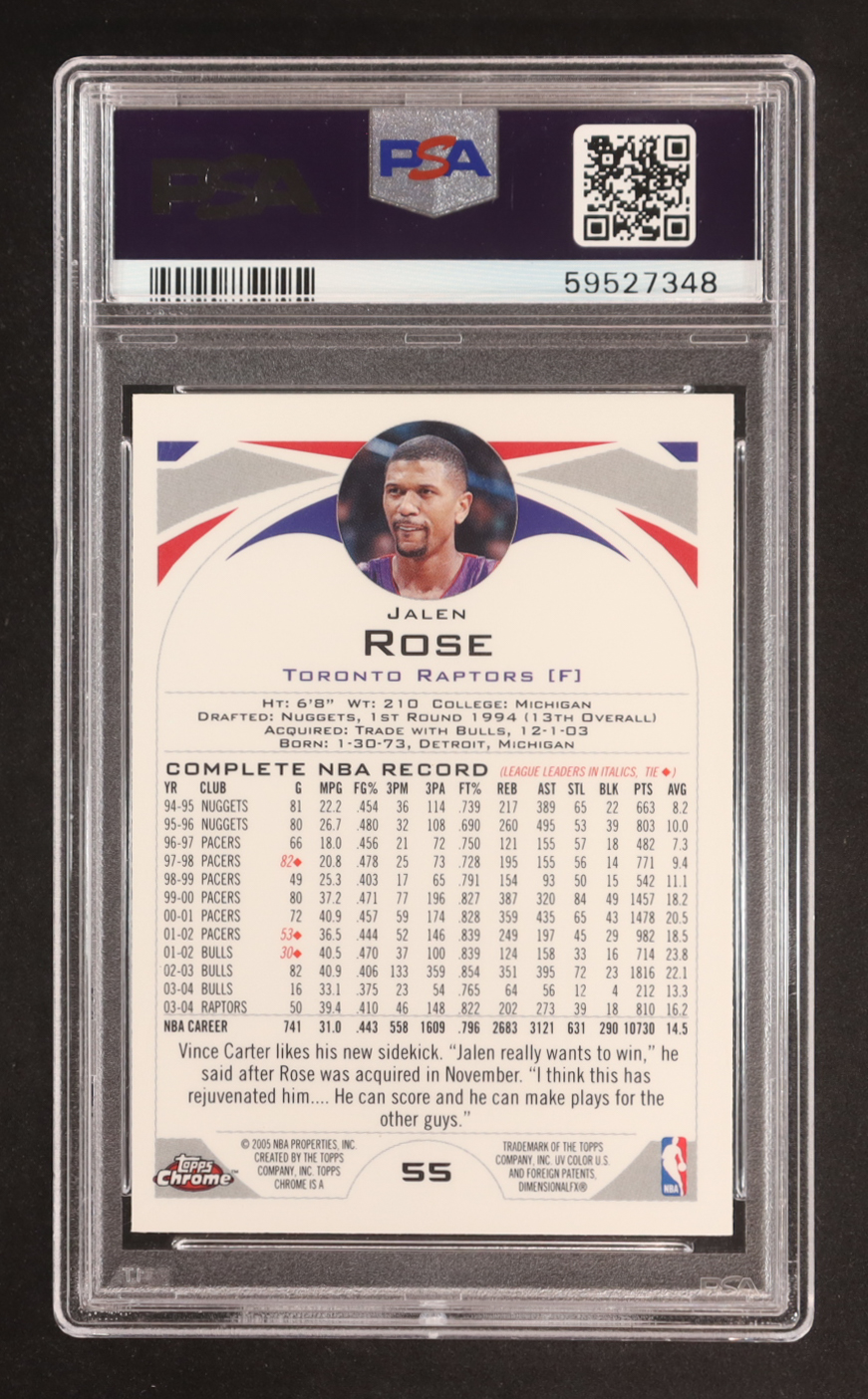 Jalen Rose 2004-05 Topps Chrome #55 (PSA 9)