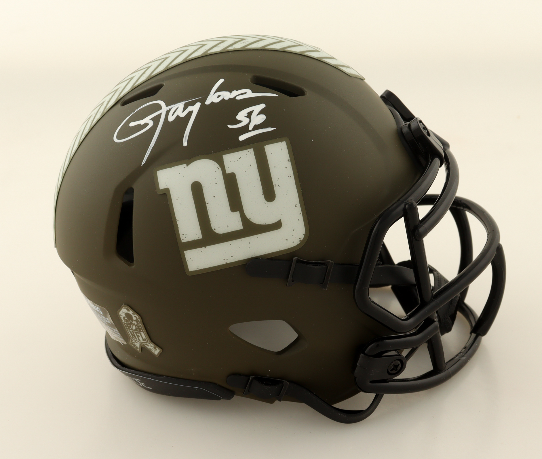 Riddell New York Giants Salute To Service Alternate Speed mini helmet. Hand-signed by Lawrence Taylor (HOF).